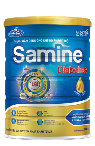 Samine Diabetes được sản xuất tại Việt Nam, tại nhà máy có hệ thống quản lý chất lượng đạt tiêu chuẩn ISO 9001/ISO 22000 với nguyên liệu Soy Protein nhập khẩu từ Mỹ. Công thức dinh dưỡng đầy đủ, bổ sung các dưỡng chất thiết yếu, là sản phẩm dinh dưỡng dùng thay thế bữa ăn phụ, bổ sung cho chế độ ăn hàng ngày. Sản phẩm cung cấp chế độ ăn cân đối, lành mạnh cho bệnh nhân đái tháo đường hoặc tiền đái tháo đường, giúp hỗ trợ kiểm soát đường huyết và tăng cường sức khỏe.