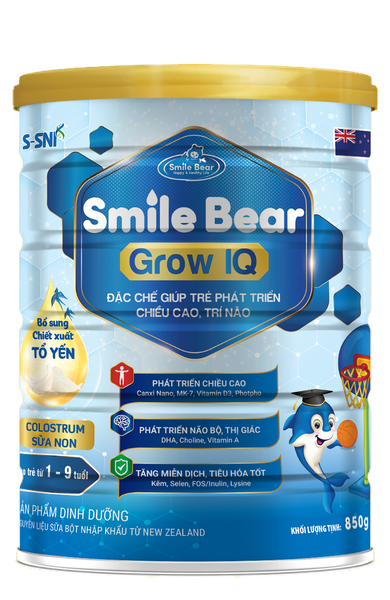 Sữa bột (20-35%), Dầu thực vật, Maltodextrin, Whey protein, Sucrose, Chất xơ hòa tan (FOS/Inulin), Soy protein, Khoáng chất (Canxi, Magie, Sắt, Kẽm, Đồng, Iot, Mangan, Selen), L-Lysine, Dầu cá (giàu DHA), Choline, Vitamin (Vitamin A, Vitamin D3, Vitamin K1, Vitamin C, Vitamin B1, Vitamin B2, Vitamin B6, Vitamin B12, Axit Pantothenic, Axit Folic, Biotin), Sữa non, Bột Canxi Nano (30mg/100g), 2’-Fucosyllactose (2’-FL HMO), Menaquinone-7 (MK-7), Chiết xuất Tổ Yến (1mg/100g), Hương liệu tổng hợp dùng cho thực phẩm.