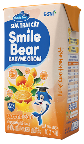 Sữa trái cây vị cam Smile Bear Babyme Grow được sử dụng từ nguyên liệu nước ép trái cây và sữa bột cao cấp thơm ngon, không chỉ tạo nên vị ngon tự nhiên thơm mát và còn được bổ sung đầy đủ các nhóm dưỡng chất chính cung cấp dinh dưỡng và phù hợp với khẩu vị sở thích của trẻ.