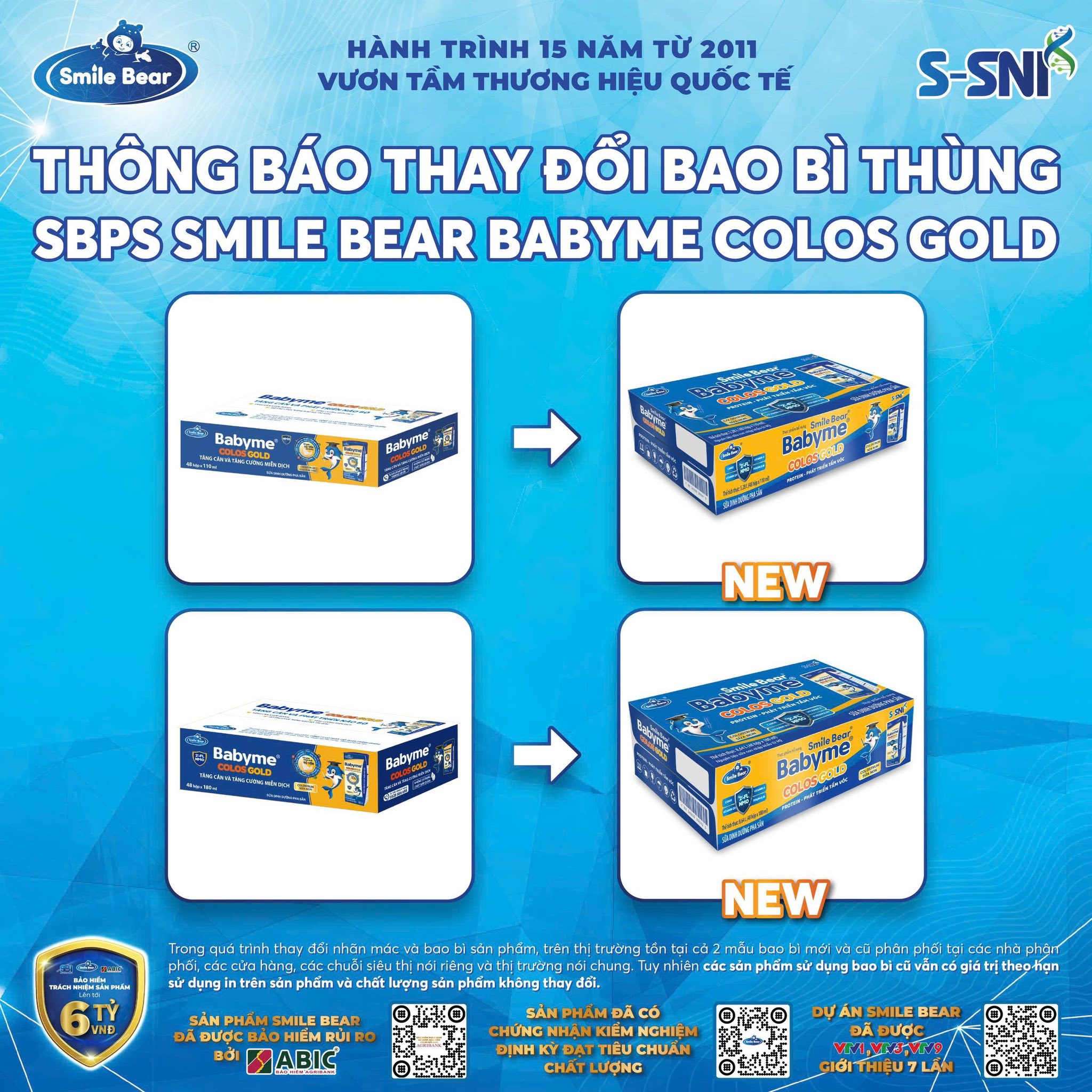 Sản phẩm SBPS Smile Bear Babyme Colos Gold chính thức được thay đổi thiết kế bao bì thùng và hộp sản phẩm.