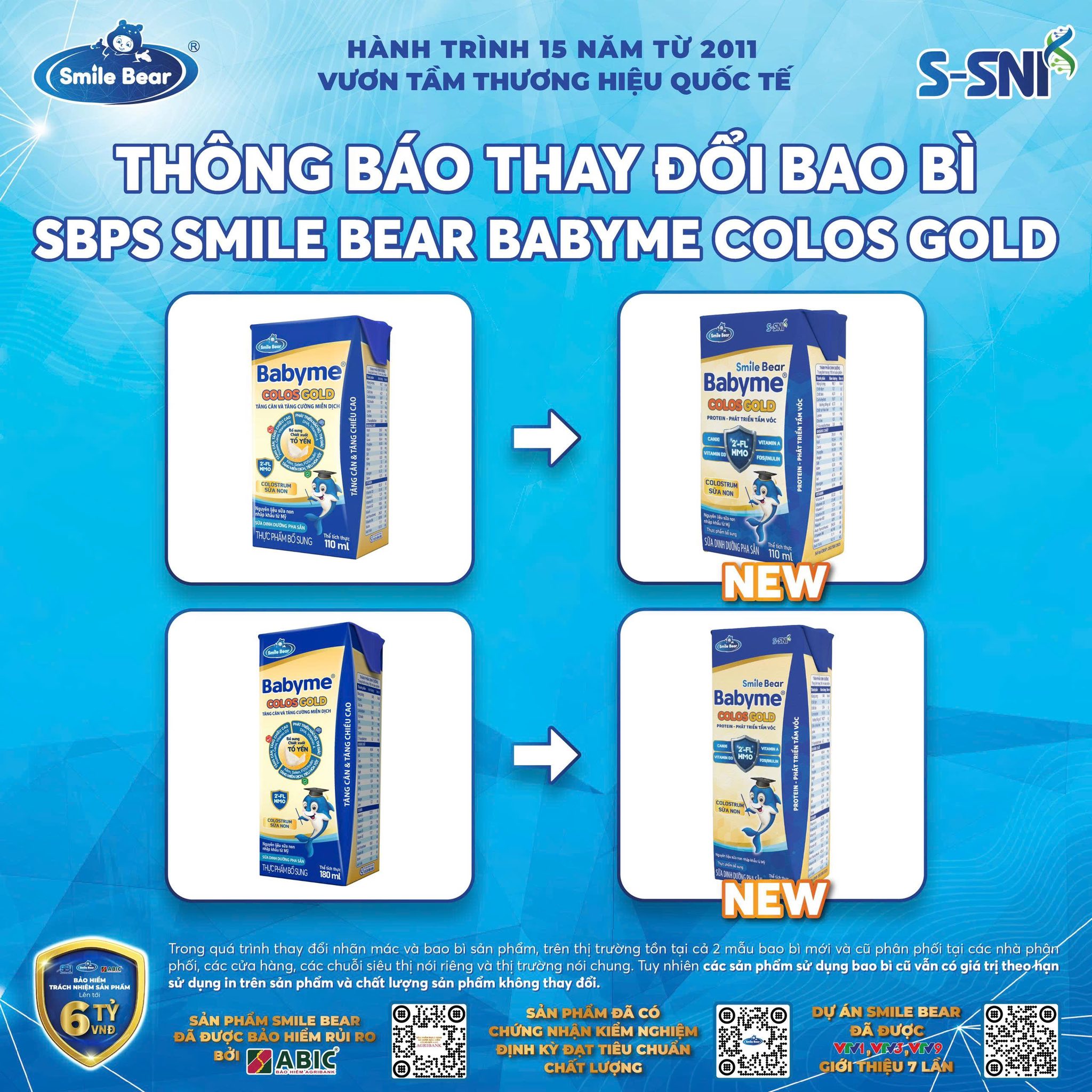 V/v: Thay đổi bao bì sản phẩm SBPS Smile Bear Babyme Colos Gold