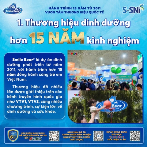 Smile Bear đồng hành cùng hàng triệu trẻ em Việt Nam, không ngừng cải tiến sản phẩm và mở rộng hệ sinh thái dinh dưỡng.