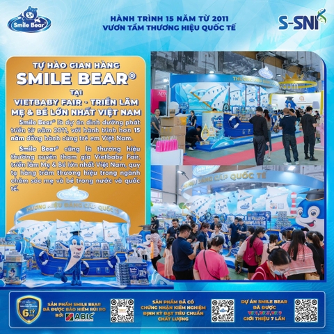 Smile Bear cũng là thương hiệu thường xuyên tham gia Vietbaby Fair, triển lãm Mẹ & Bé lớn nhất Việt Nam, nơi quy tụ hàng trăm thương hiệu trong ngành chăm sóc mẹ và bé trong nước và quốc tế.